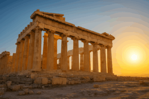 Il y a d’abord le legs des systèmes de pensée des mondes du passé, et qui se prolongent aujourd’hui. Le christianisme est né comme un judaïsme. Sortant de l’espace où se situaient son initiateur et, surtout, ceux qui nous l’ont raconté comme ils l’ont voulu et par qui il est seul connu, il s’est épanoui dans « l’empire gréco-romain »3. Ci-contre le Parthénon.  Ses conceptions initiales, ont été largement remaniées par les catégories de la culture et de la philosophie grecques que les apologètes4 et les « Pères de l’Église » utilisaient parce qu’elles étaient les leurs et, surtout, celles de ceux qu’ils essayaient de convaincre. De plus, il s’est ensuite romanisé5 et surtout « impérialisé » quand, après Constantin, il est devenu la religion chérie du pouvoir et l’un de ses instruments6. Ce sont ces circonstances qui en ont fait un judéo-helléno-romano christianisme, avant que d’autres circonstances ne le fracturent entre Latins et Grecs du Moyen-âge, entre catholiques et protestants de l’âge moderne et entre modernistes et traditionnalistes d’aujourd’hui. Indubitablement l’Europe est chrétienne dans ce sens-là, pour autant que l’on accepte deux limites à cette affirmation : celle de l’historicisation perpétuelle et toujours en cours de tous les phénomènes humains et celle des bourgeonnements perpétuels de biens d’autres legs qui, eux, ne sont pas chrétiens même au sens composite qui vient d’être décrit ou ne le sont pas directement.